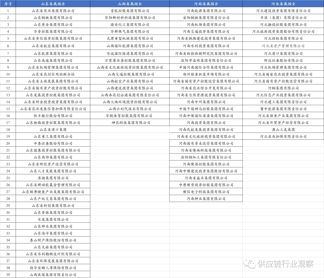 根据各地国资委披露的监管企业名录,山河四省共有省属国企103家,数量上占全国比重的16%左右。其中,山东省属国企38家、山西省属国企18家,河南28家,19家。具体名录如下,下表山西焦煤应为山西省属国企: